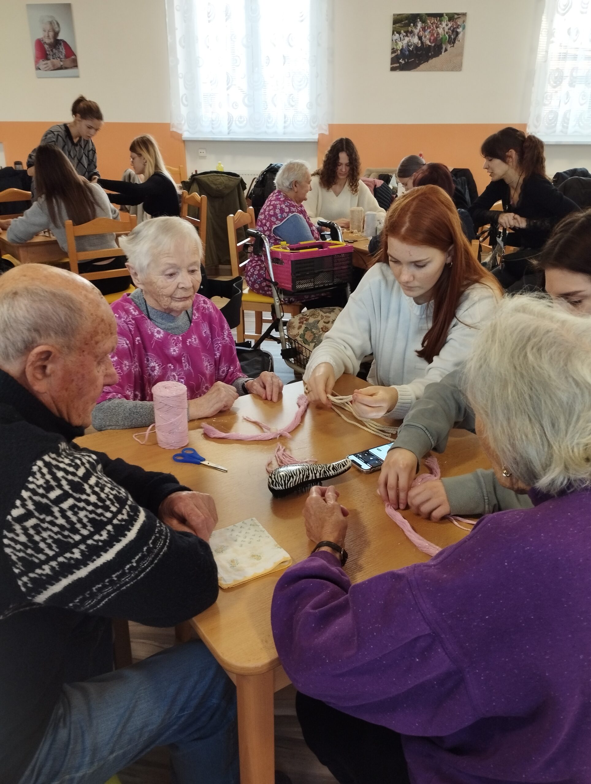 Prosincové setkání proběhlo v neformálním duchu. S příchodem Vánoc souvisí i tvorba všemožných ozdob. Žáci sociální činnosti se proto se seniory pustili do výroby andělů z macramé provázků a papírových dekorací.