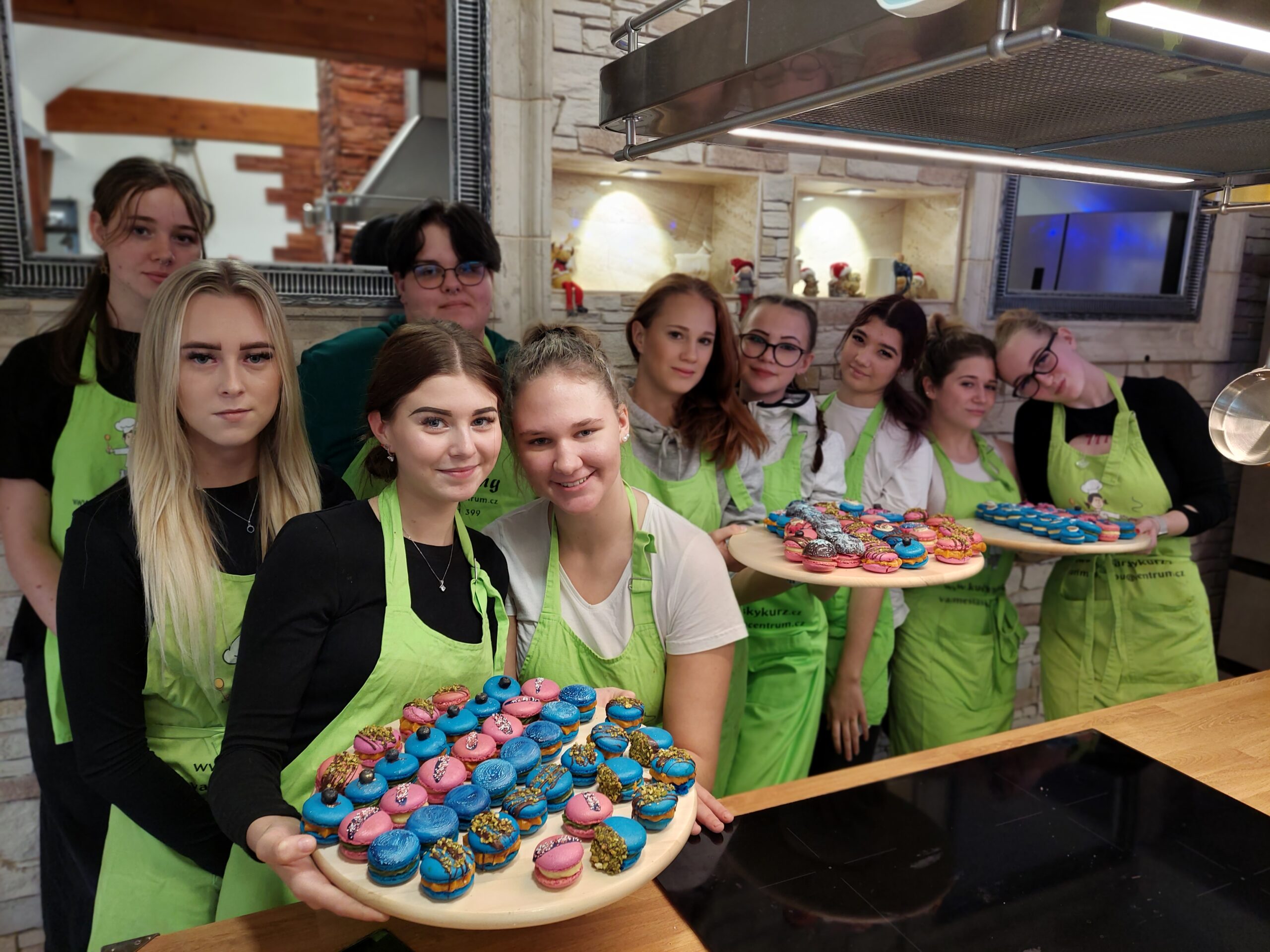 Příprava makronek je notoricky známá svou náročností, a to na čas, technologii i pečlivost. Žáci si prošli celým technologickým procesem. Nejprve se naučili to nejzásadnější – různé techniky tvorby, sušení a pečení makronkových skořápek všech možných barev.