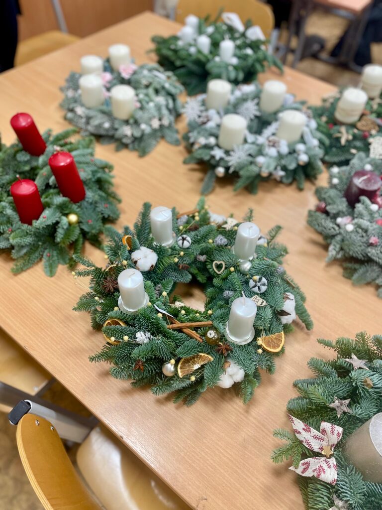 Adventní čas se nezadržitelně blíží, což samozřejmě vyžaduje odpovídající dekorace! Proto se studenti třídy A3 SPgŠ a SOŠ Kladno s nadšením zapojili do soutěže ve vázání a aranžování adventních věnců. Každý z nich předvedl velkou míru kreativity, zručnosti a citu pro detail. Výsledkem byla nádherná kolekce originálních adventních dekorací.
