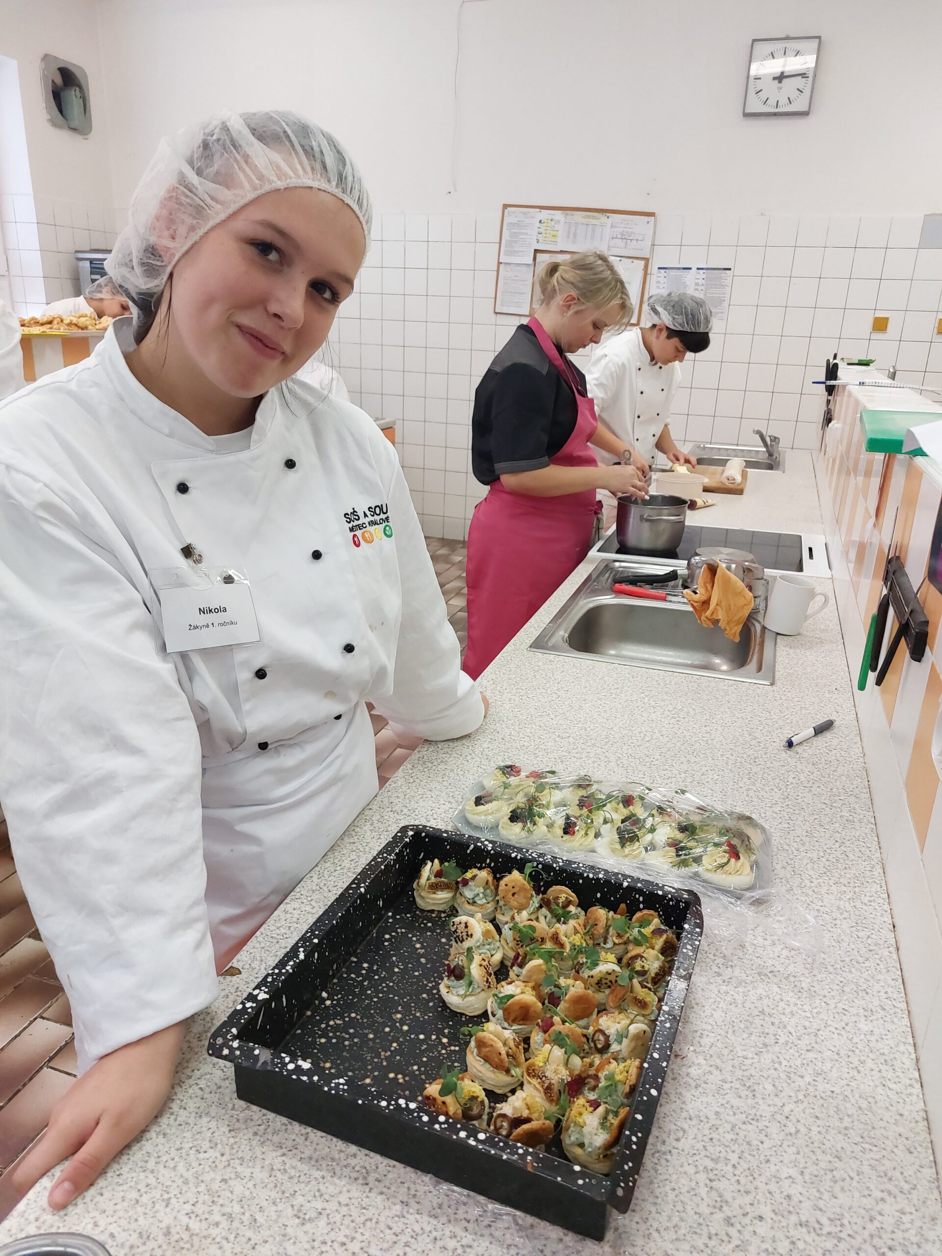 Venkovní teploty klesají k nule a nám se žádá spíš teplých jídel – takových, co prohřeji každou buňku v našem těle a hlavně pohladí ty chuťové. Žáci oboru Kuchař-číšník z Městce Králové však podzimní hody vzali z jiného úhlu. Skvělý doplňkem každého teplého chodu jsou i pokrmy studené kuchyně – z masa i ryb, ve formě pomazánek, aspiků i kanapek. Listopadový projekt podpořený z našich grantů měl za cíl ukázat žákům místní SOŠ a SOU způsoby přípravy těchto pokrmů a na hotové výrobky navnadit nové studenty během dne otevřených dveří. A my jsme tam nemohli chybět!